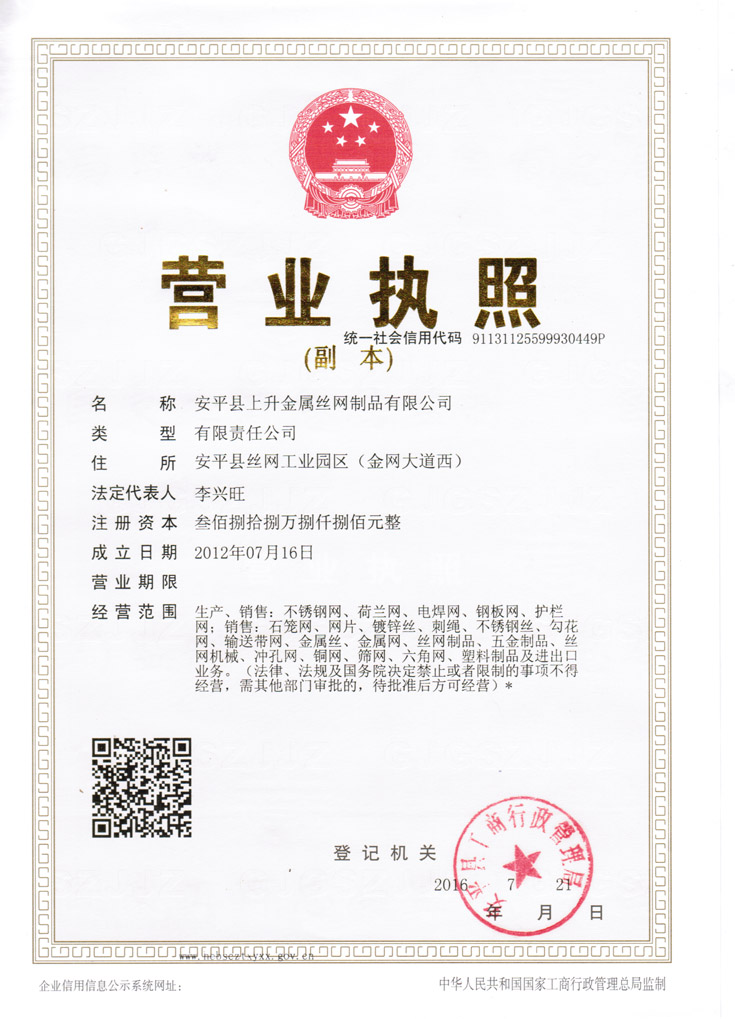 版權(quán)所有 安平縣上升金屬絲網(wǎng)制品有限公司