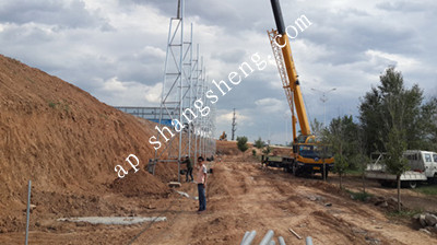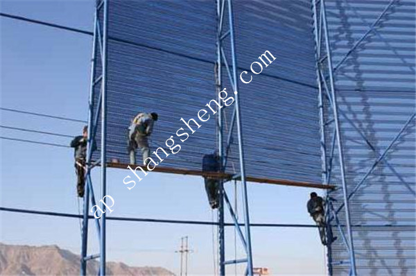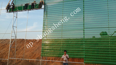 防風(fēng)抑塵網(wǎng)長度最長不得超過6.15米(網(wǎng)長越長,鋼結(jié)構(gòu)的距離越遠,擋風(fēng)效果越差),峰高7.5cm防風(fēng)效果最佳,此為國家科學(xué)院風(fēng)洞試驗得出的結(jié)論,由于各地所處地理環(huán)境不同,氣象條件不同,也應(yīng)采用不同規(guī)格型號的擋風(fēng)抑塵墻才能達到有效防風(fēng)抑塵的效果。需經(jīng)專業(yè)人員設(shè)計,才能保證擋風(fēng)抑塵墻的安全性與環(huán)保效果。